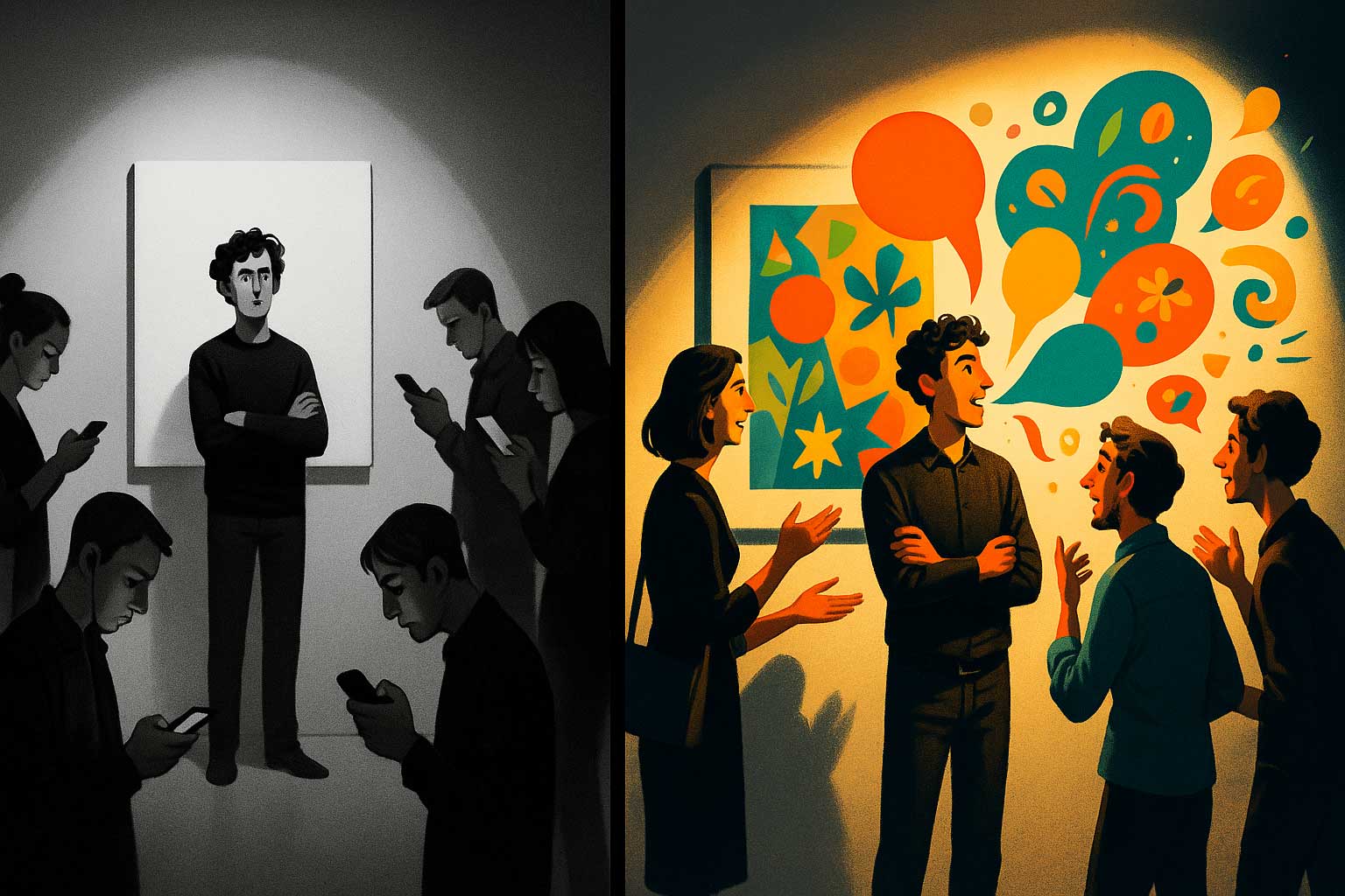 But here’s where most artists go wrong: they either say too little (“this is a painting I made”) or dive into art-speak quicksand (“this work interrogates the liminal spaces between digital consciousness and analog materiality”). Neither works.